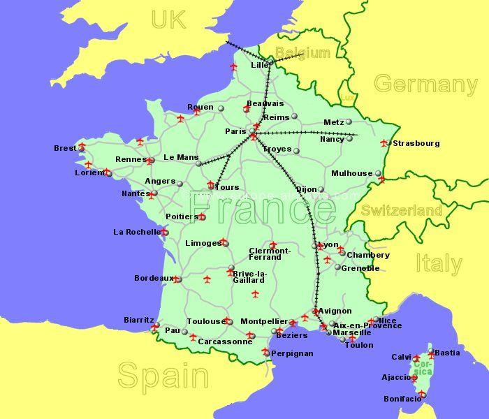 Los aeropuertos del sur de Francia, mapa. Al sur de Francia aeropuertos mapa (Europa Occidental - Europa) para imprimir. Al sur de Francia aeropuertos mapa (Europa Occidental - Europa) para descargar. Hay 10 aeropuertos internacionales en el sur de Francia con servicios regulares desde el Reino Unido, Irlanda, Suecia, Noruega, Europa continental, Canadá y Estados Unidos, tal y como se muestra en el mapa de aeropuertos del sur de Francia. Incluye los aeropuertos de Niza y Toulon en la Costa Azul, los de Marsella y Aviñón en la Provenza, y los de Nimes, Montpellier, Beziers, Carcassonne y Perpignan en el Languedoc.